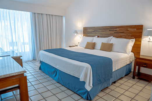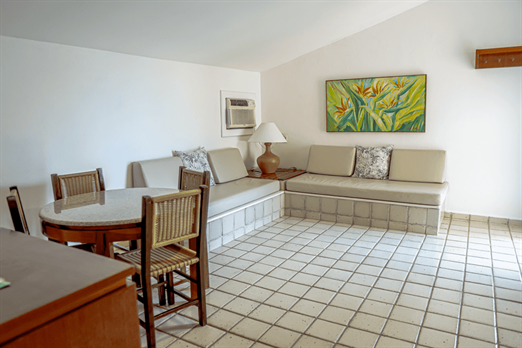 O quarto acomoda até 03 adultos e 02 crianças de até 07 anos, esta unidade possui 01 cama king no quarto mais 02 sofás cama de alvenaria na antessala.