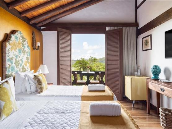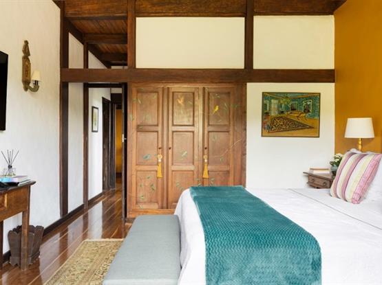 Comodidades: Suíte com dois quartos, Piso de madeira. Banheiro com ducha e banheira de imersão individual , duas cubas com espelhos e secador de cabelo.