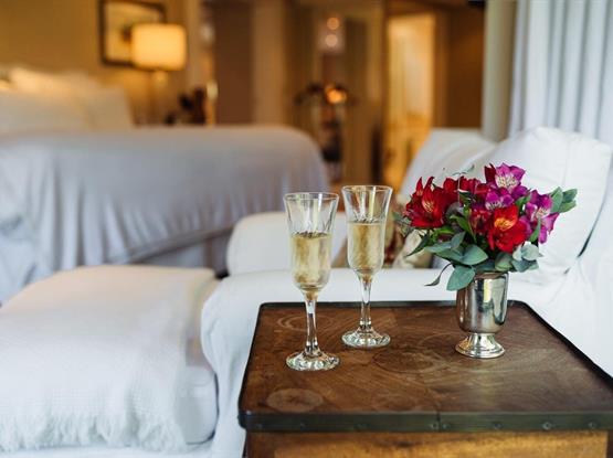 Nossos hóspedes são recepcionados com uma taça de espumante no momento do check in