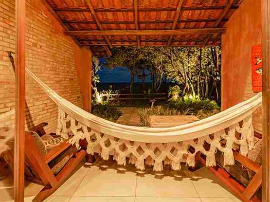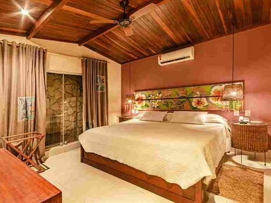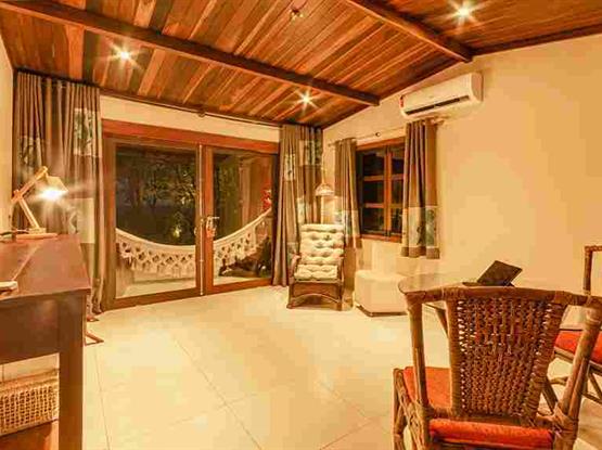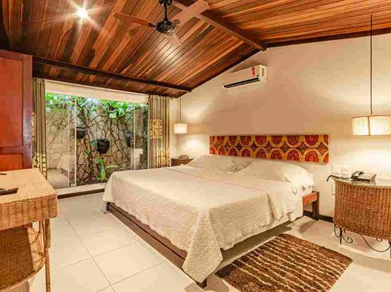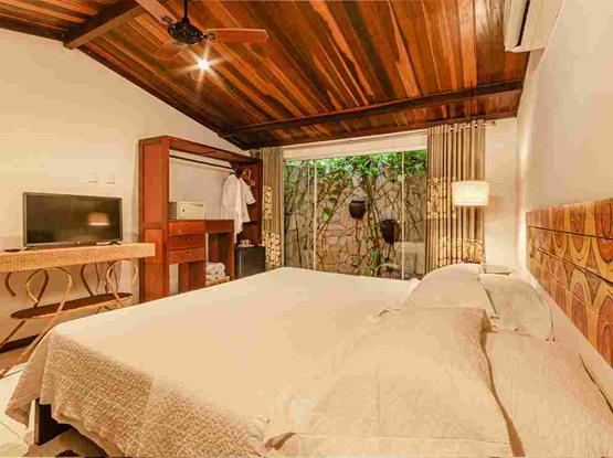 Possui 50m², quarto com cama de casal king size e jardim de inverno, antessala, minibar, telefone com discagem direta, ar condicionado split, antesala com ventilador de teto e ar, TV LCD (apenas no quarto), wi-fi, banheiro com ducha quente por aquecimento solar, secador de cabelo, espelho para maquiagem, amenities, aromaterapia, cofre (custo adicional), varanda com rede e cadeiras.