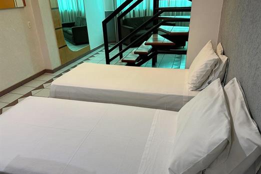Suíte Duplex com ambientes interligados de forma funcional com acesso a internet wi-fi.