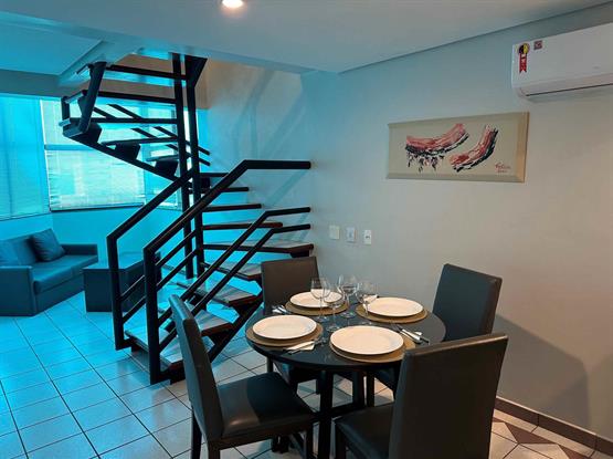 Suíte Duplex com ambientes interligados de forma funcional com acesso a internet wi-fi.