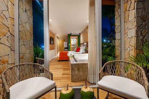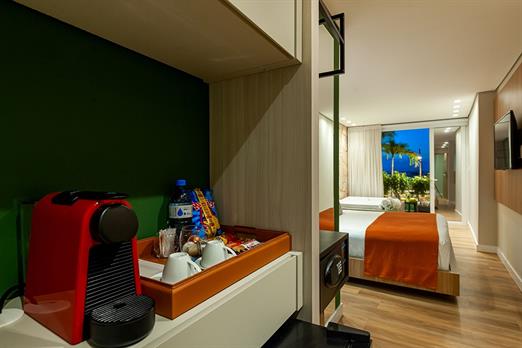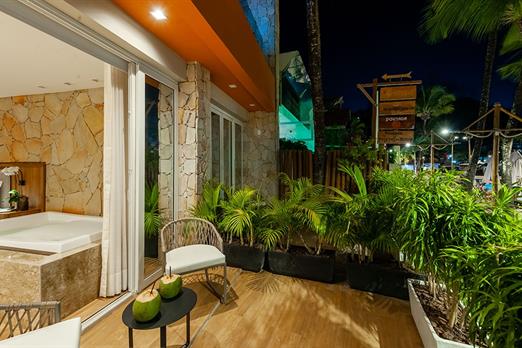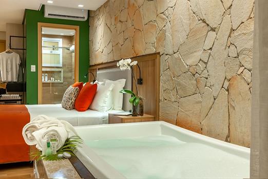Com decoração moderna e sofisticada, o Quarto oferece uma atmosfera elegante e acolhedora, ideal para quem busca conforto e comodidade. Totalmente planejado para proporcionar experiências únicas, conta com banheira de hidromassagem exclusiva e uma charmosa varanda — o refúgio perfeito para momentos de relaxamento e tranquilidade. Este quarto não possui vista para o mar, não permite a separação das camas e não aceita pets. Reservas efetuadas com menos de 7 dias de antecedência ao check-in deverão ser pagas diretamente na recepção, por meio de cartão de crédito físico ou Pix.