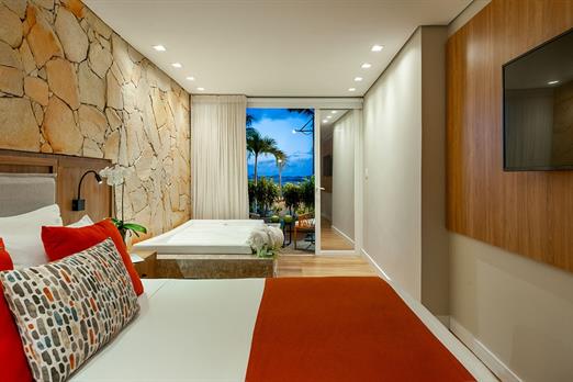 Com decoração moderna e sofisticada, o Quarto oferece uma atmosfera elegante e acolhedora, ideal para quem busca conforto e comodidade. Totalmente planejado para proporcionar experiências únicas, conta com banheira de hidromassagem exclusiva e uma charmosa varanda — o refúgio perfeito para momentos de relaxamento e tranquilidade. Este quarto não possui vista para o mar, não permite a separação das...