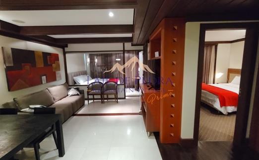 Acomoda até cinco pessoas em ambiente ideal para família. A Suíte Premium Prime tem dois quartos com cama de casal Queen, ar-condicionado (quente e frio), acesso às bicicletas, sofá e blackouts atualizados (melhor vedação da iluminação). Sala de estar com lareira, sofá-cama, Smart TV, e mesa de jantar. Espaço gourmet equipado. Aproximadamente 68 m². A categoria Premium possui banheira de imersão. Comodidades: ⦁ Dois quartos com cama de casal Queen (04 pessoas) ⦁ Sala com sofá-cama (01 pessoa) ⦁ Blackouts atualizados ⦁ Bicicletas para passeios de acordo com disponibilidade ⦁ Sacada (unidades térreas) ⦁ Lareira ⦁ Ar condicionado (q...