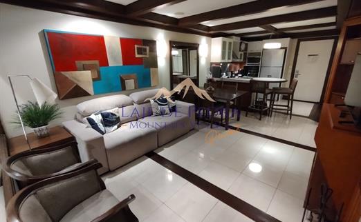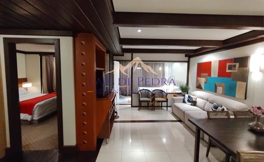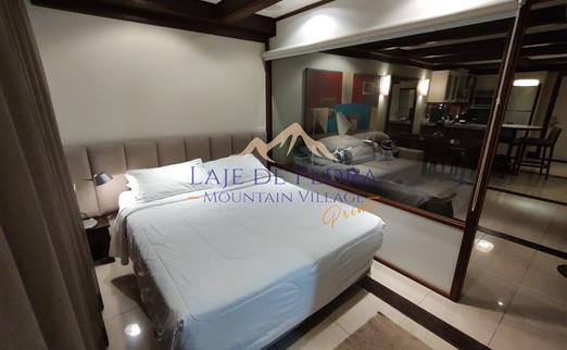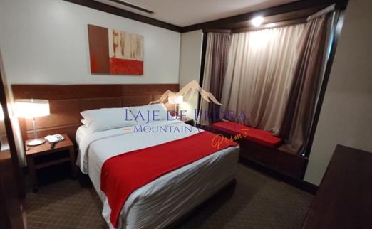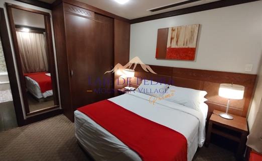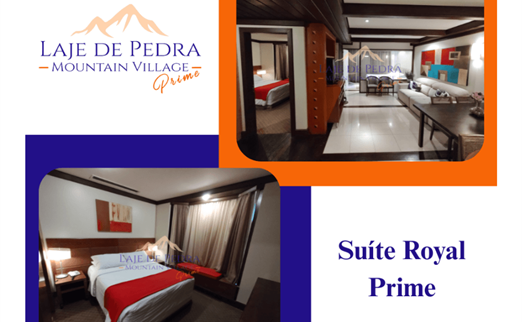 Suíte Royal Prime - a mais completa. Acomoda até cinco pessoas, ambiente ideal para família. A Suíte Royal Prime tem dois quartos com cama de casal Queen, ar-condicionado (quente e frio), cofre, acesso às bicicletas, sofá e blackouts e atualizados (melhor vedação da iluminação). Sala de estar com lareira, sofá-cama, Smart TV, e mesa de jantar. Espaço gourmet equipado. Aproximadamente 68 m². Comodidades: ⦁ Dois quartos com cama de casal Queen (04 pessoas) ⦁ Sala com sofá-cama (01 pessoa) ⦁ Blackouts atualizados ⦁ Bicicletas para passeios de acordo com disponibilidade ⦁ Sacada (unidades térreas) ⦁ Lareira ⦁ Ar condicionado (quente...