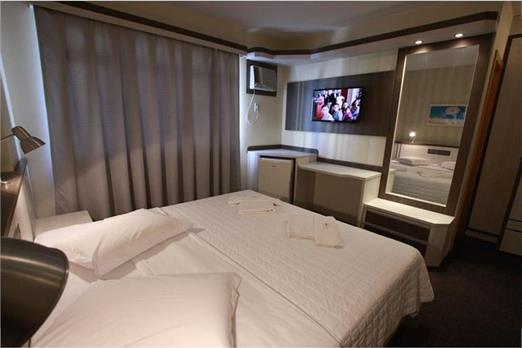 apartamentos com ar condicionado, TV a cabo, cama box, musica ambiente, frigobar, bancada para trabalh...