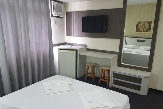 Apartamentos com ar condicionado, TV a cabo, cama box, musica ambiente, frigobar, bancada para trabalho, internet sem...