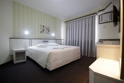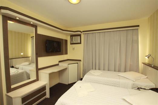 Apartamentos com ar condicionado, TV a cabo, cama box, musica ambiente, frigobar, bancada para trabalho, internet sem fio, cofre...