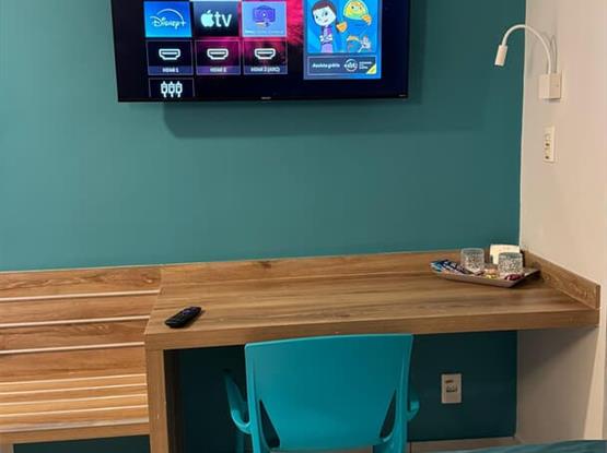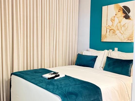 Apartamento super aconchegante e confortável, possui cama de casal Queen com colchão em espuma de visco elástico, hiper soft e malha de Jacguard, enxoval Teka personalizado, toalhas de 600g, quatro travesseiros, frigobar abastecido cortesia, ar condicionado, secador de cabelo, cofre eletrônico, TV de smart 43”, telefone, abajur com carregador USB, mesa de trabalho, sprinklers, sensores de fumaça,...