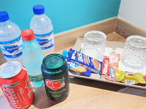 Apartamento super aconchegante e confortável, possui cama de casal Queen com colchão em espuma de visco elástico, hiper soft e malha de Jacguard, enxoval Teka personalizado, toalhas de 600g, quatro travesseiros, frigobar abastecido cortesia, ar condicionado, secador de cabelo, cofre eletrônico, TV de smart 43”, telefone, abajur com carregador USB, mesa de trabalho, sprinklers, sensores de fumaça, banheiro privativo, shampoo, condicionador, loção hidratante, sabonete em barra e sabonete liquido, lenço de papel, Kit beleza, piso em cerâmica e wi-fi grátis.Todos os Super Luxos possuem frigobar abastecido com duas águas, uma água com gás, dois refrigerantes, Chocolates, uma bolacha clube social, um Bis Extra, uma barra de cereal e uma bala.