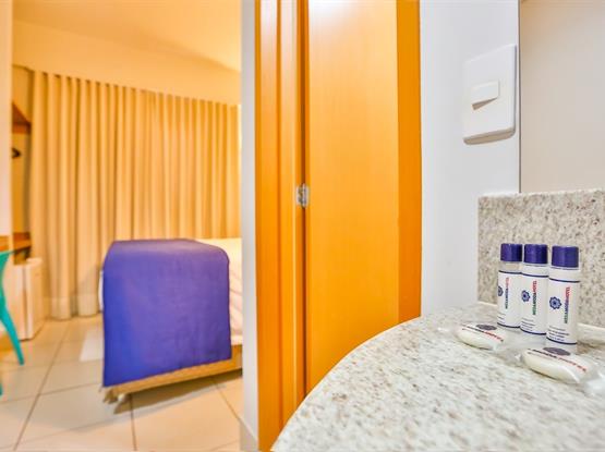 Melhor Tarifa Disponível Site O horário de *check-in é a partir das 15:00 e de check-out até 12:00.* • Estacionamento do Shopping conveniado ao hotel - Diária de R$ 30,00. • Cortesia café da manhã no restaurante do hotel e internet. • Todos os quartos possuem ar-condicionado, TV, enxoval completo, sabonetes e banheiro privativo. • Crianças são bem-vindas. • Criança até 7 anos é cortesia dormindo na mesma cama que os pais ou responsáveis. Permitimos (uma) criança cortesia por apartamento. Sendo necessário é possível acrescentar cama extra, custo adicional R$ 75,00 por diária. • O número máximo permitido de camas extras depende do quarto que você escolher. Cama extra está disponível somente com solicitação diretamente ao hotel mediante a disponibilidade. • Não temos disponibiliidade de berço. • Animais de estimação: não permitidos. • Todos os apartamentos são para não fumantes Obs 1: Menores acompanhados dos pais é obrigatório a apresentação de documentos pessoais. Acompanhados de terceiros devem apresentar documentos pessoais e autorização de hospedagem dos pais/responsáveis registrada em cartório. Obs 2: Caso seja necessário estacionamento para Van, ônibus ou caminhão o mesmo deverá ser solicitado diretamente ao Mega Moda Park, pela central (62) 98589-6515.