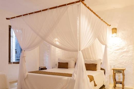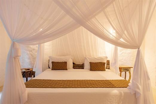 Cada suíte é adornada com elegantes mosquiteiros dossel, adicionando um toque de charme e conforto, além de estar equipada com camas king-size para garantir um descanso reparador.