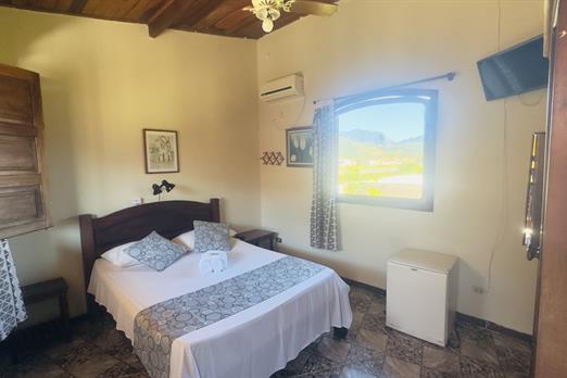 2. Tarifa COM café da manhã Tarifa com café da manhã incluso. Acomodação equipada com ar-condicionado, ventilador de teto, TV, frigobar, Wi-Fi, roupas de cama e toalhas. Estacionamento gratuito