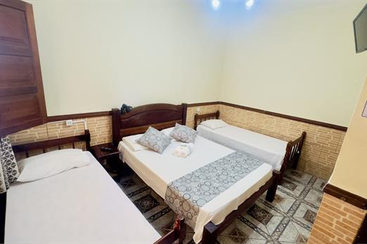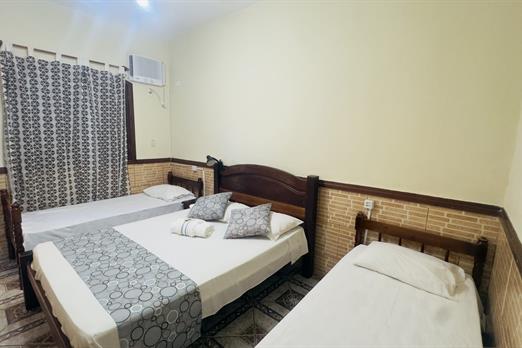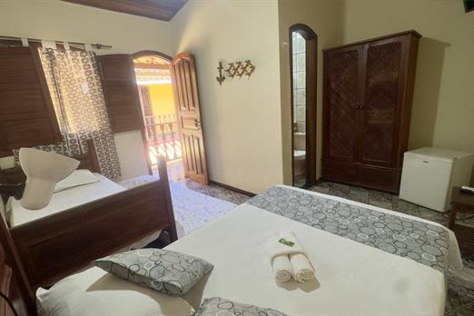 2. Tarifa COM café da manhã Tarifa com café da manhã incluso. Acomodação equipada com ar-condicionado, ventilador de teto, TV, frigobar, Wi-Fi, roupas de cama e toalhas. Estacionamento gratuito