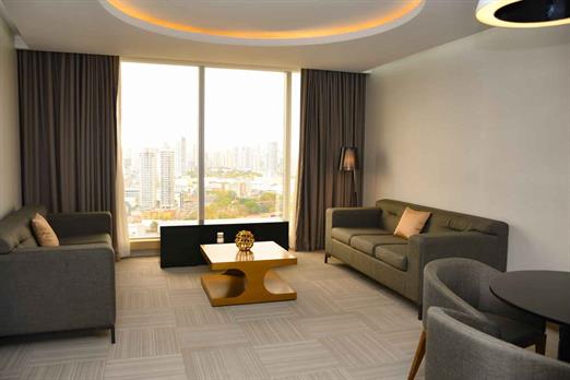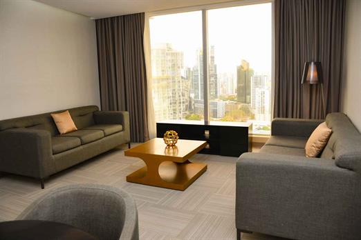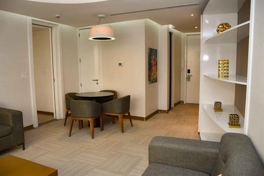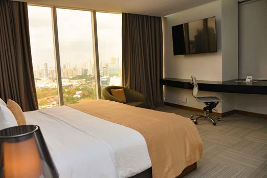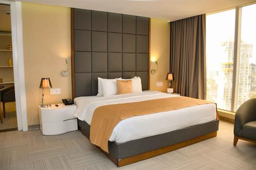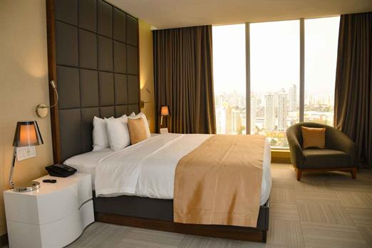 Habitación con cama King size de 2 x 2 metros, de 143 m2 en promedio.