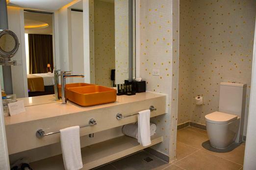 • Amenidades de diseñador, baño con tina, secador de cabello y espejo de vanidad en el baño