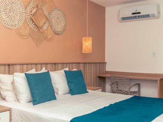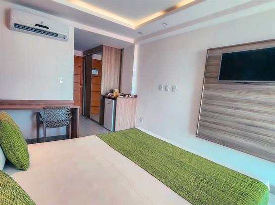 Adentre um espaço de 24m² projetado para oferecer conforto e praticidade em um ambiente acolhedor. Ideal para quem busca tranquilidade, nossa suíte proporciona uma vista tranquila e aconchegante da cidade, onde cada detalhe foi pensado para garantir uma estadia agradável.