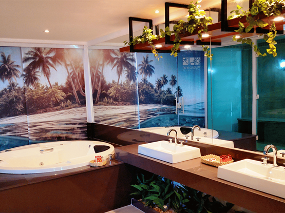 À medida que a tarde se aproxima, você pode relaxar na sauna interna privativa, um luxo reservado apenas para você, onde o vapor quente e perfumado ajuda a revitalizar corpo e mente. Mais tarde, um jantar servido com excelência no conforto da sua suíte complementa o dia perfeito.