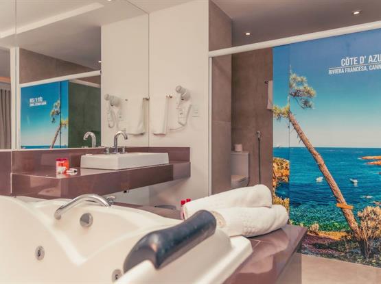 Relaxe e revitalize-se na hidromassagem privativa do banheiro, proporcionando um toque extra de luxo e conforto.