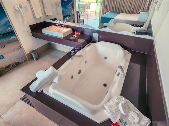 Desfrute de momentos de relaxamento na hidromassagem interna privativa, um luxo adicional para revitalizar corpo e mente.