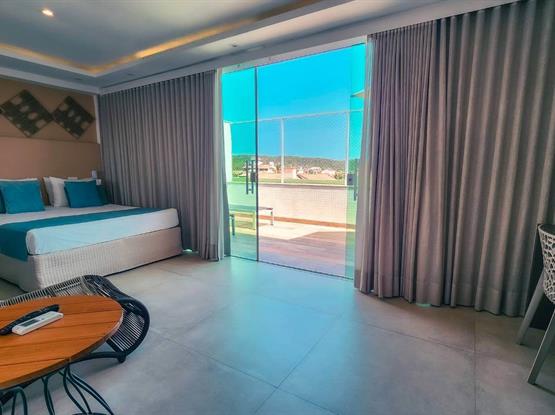 Adentre nossa suíte espaçosa de 45m², onde cada detalhe foi meticulosamente pensado para proporcionar uma estadia de luxo e conforto. Localizada em um ambiente tranquilo, nossa suíte oferece uma vista deslumbrante da cidade, ideal para relaxar e apreciar o cenário urbano.