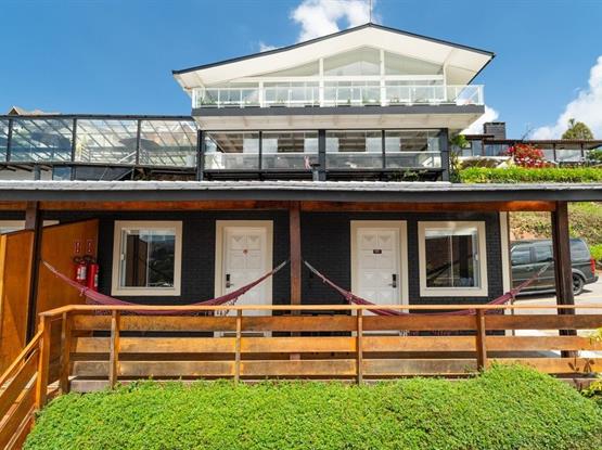 A varanda com duas redes proporciona um espaço ideal para relaxar, com uma vista parcial para o Vale de Montanhas de Campos do Jordão. A facilidade de estacionar ao lado do chalé é um diferencial que garante ainda mais comodidade. Uma excelente opção para famílias ou pequenos grupos que buscam aconchego, funcionalidade e tranquilidade em meio à natureza.