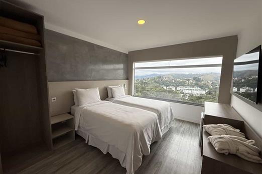 O Master Externo Duplex é um apartamento exclusivo de dois andares, localizado na parte externa do hotel, a aproximadamente 70 metros do prédio principal. Com vista total para o Vale de Montanhas, o espaço é dividido em três ambientes: dois quartos e uma sala de estar, oferecendo conforto e privacidade em um cenário inspirador.