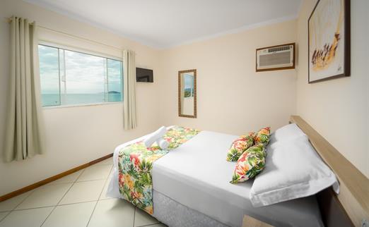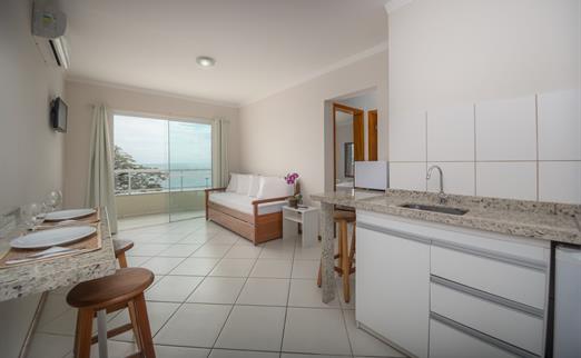 Essa categoria de apartamento mede aproximadamente 36 metros quadrados e está equipada com uma linda varanda com vista frontal do Mar, Wi-Fi Grátis, Cofre, Frigobar, Ar condicionado, 2 TV LED 24”, Água aquecida a Gás, Banheiro privativo e Amenidades de banho. Também conta com uma Cozinha Básica Compacta (Cook Top, Pia e Micro-ondas) e mesa de Jantar Embutida. Também conta com sofá cama de 2 lugares.
