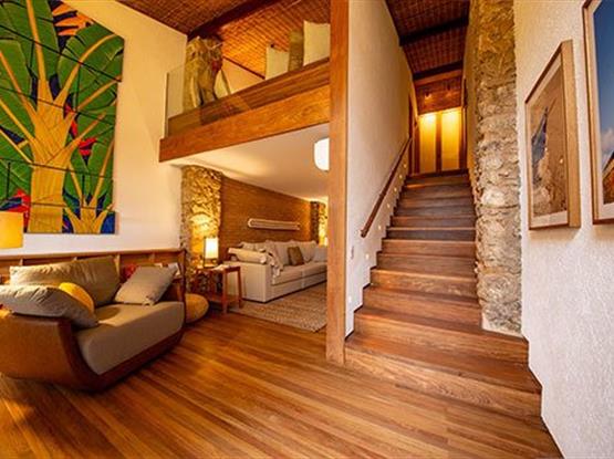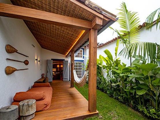 Pequena casa colonial de 130 m², reformada e integrada ao casario principal. A fachada é para a rua, mas para maior privacidade, o acesso se faz pela entrada principal da pousada. São dois andares: no primeiro, sala de estar com sofá, poltrona e uma minibiblioteca convidativa para uma tarde mais reservada, cozinha e mesa de jantar de seis lugares. No segundo andar, uma suíte ampla e charmosa, e um...