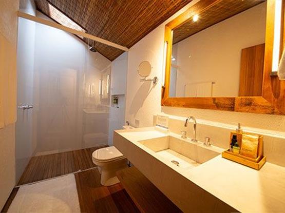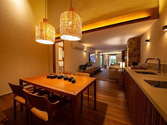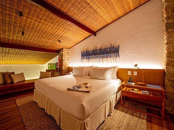 Pequena casa colonial de 130 m², reformada e integrada ao casario principal. A fachada é para a rua, mas para maior privacidade, o acesso se faz pela entrada principal da pousada. São dois andares: no primeiro, sala de estar com sofá, poltrona e uma minibiblioteca convidativa para uma tarde mais reservada, cozinha e mesa de jantar de seis lugares. No segundo andar, uma suíte ampla e charmosa, e um banheiro conta com um chuveiro delicioso. Acomoda confortavelmente um casal e pode receber camas adicionais.