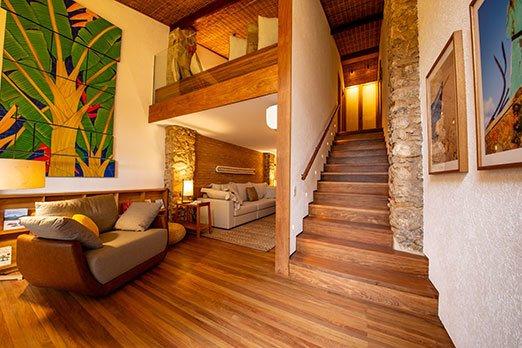 Pequena casa colonial de 130 m², reformada e integrada ao casario principal. A fachada é para a rua, mas para maior privacidade, o acesso se faz pela entrada principal da pousada. São dois andares: no primeiro, sala de estar com sofá, poltrona e uma minibiblioteca convidativa para uma tarde mais reservada, cozinha e mesa de jantar de seis lugares. No segundo andar, uma suíte ampla e charmosa, e um...