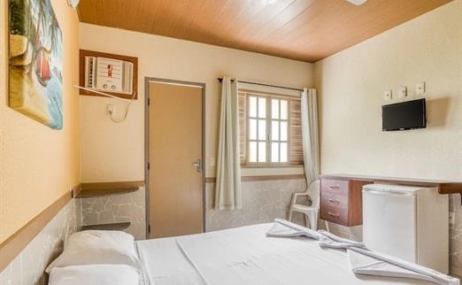 Quarto com Ar Condicionado Econômico , bem arejado com 12m², banheiro privativo, entrada privativa , roupa de cama e banho, Tv via satélite , frigobar , pequeno armário de gavetas. A vista é interna , alguns quartos estão localizados no 1º , seu acesso será feito por escadas. Crianças de 0 a 1 ano e 11 meses no mesmo apartamento dos pais ou responsáveis legais: sua acomodação será na cama dos pais ou responsáveis legais utilizando os mesmos itens de cama. Caso queira cama extra deverá entrar em contato com a Pousada para verificar disponibilidade e valores. Condições para Crianças Pagantes: crianças a partir de 2 anos serão co...