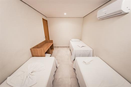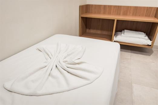 Não dispomos de serviço de quarto, porém se o hóspede desejar pode solicitar a troca de roupas de cama e banho em nossa recepção.