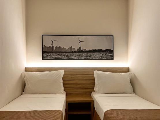 Com vista interna, possui capacidade para hospedar até 04 pessoas, pode ser configurado com 01 cama de casal e 02 de solteiro ou com 04 camas de solteiro.
