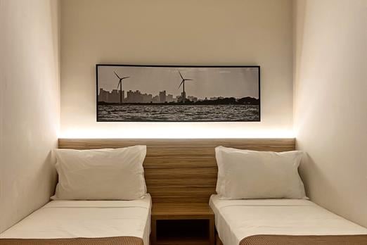 Com vista interna, possui capacidade para hospedar até 04 pessoas, pode ser configurado com 01 cama de casal e 02 de solteiro ou com 04 camas de solteiro.