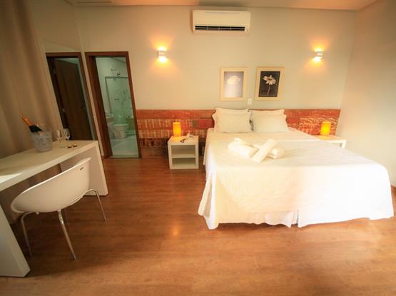 Este apartamento se localiza mais ao fundo da pousada, o que lhe garante maior silencio e privacidade. é equipado com cama king box e banheiro mais amplo com banheira de hidromassagem. Possui varanda de onde pode se avistar a lagoa que dá nome à cidade.