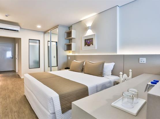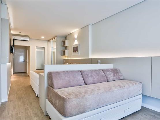 Estacionamento gratuito sem manobrista, com vagas rotativas. Um veículo por apartamento/suíte.