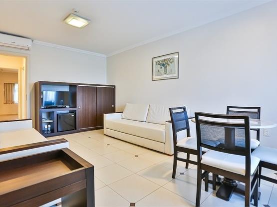 Estacionamento gratuito sem manobrista, com vagas rotativas. Um veículo por apartamento/suíte.