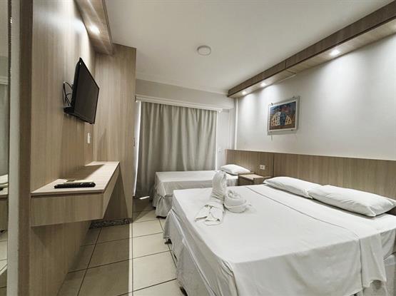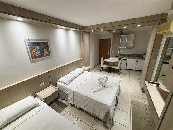 • TV (não é a cabo) • Frigobar • Ar condicionado (nos quartos e na sala) • Não possui camas extras ou berço • Não possui cozinha.