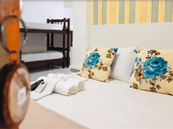 Este quarto climatizado dispõe de 1 cama casal e 1 cama de solteiro com cama auxiliar, TV, frigobar e banheiro privativo com chuveiro de água quente.