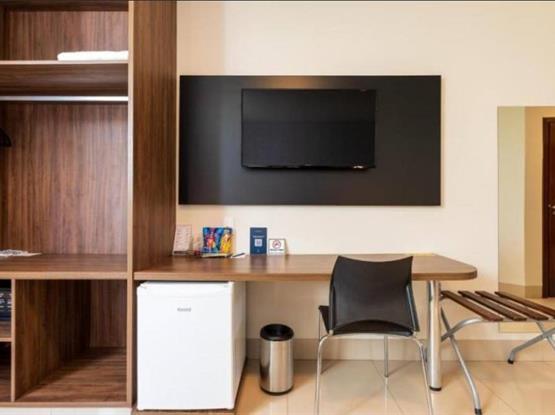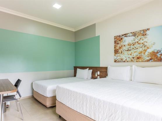 - Nossos acolhedores apartamentos apresentam um elegante piso frio, uma moderna TV LED de 32 polegadas e uma cama de casal Queen + 01 cama de solteiro, proporcionando flexibilidade para atender às suas preferências. Para o seu conforto, oferecemos também um secador de cabelo, um minibar, ar condicionado Split, um cofre para seus objetos de valor, acesso cortesia à internet wireless e uma ampla bancada de trabalho.