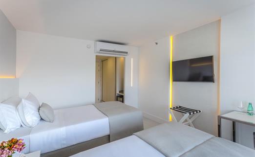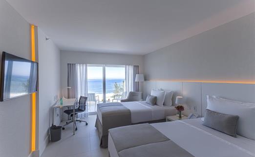 Com 23m² e piso frio, este quarto proporciona conforto e praticidade em um ambiente acolhedor. A varanda privativa, equipada com mesa e cadeiras, oferece uma belíssima vista para o mar — ideal para momentos de relaxamento e contemplação. Entre as comodidades estão ar-condicionado individual, Smart TV de 42” com canais a cabo gratuitos, cofre digital, frigobar abastecido (consumo cobrado à parte), além de um banheiro completo com secador de cabelo, amenities de cortesia e uma funcional mesa de trabalho. Acomodando até 2 adultos, a categoria também recebe uma criança de até 10 anos como cortesia, desde que compartilhe a cama com os pa...