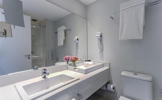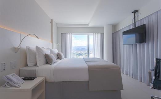Com 26m² e piso frio, este quarto proporciona conforto e praticidade em um ambiente acolhedor. Possui uma varanda equipada com mesa e cadeiras, ideal para relaxar enquanto aprecia a vista para o bairro. Entre os destaques, oferece ar-condicionado individual, Smart TV de 42” com canais a cabo gratuitos, cofre digital, frigobar abastecido (consumo cobrado à parte), além de um banheiro completo com secador de cabelo, amenities de cortesia e uma funcional mesa de trabalho. Acomodando até 2 adultos, essa categoria também recebe uma criança de até 10 anos como cortesia, desde que compartilhe a cama com os pais. Os apartamentos estão distr...
