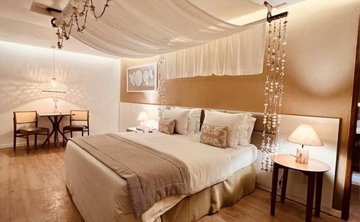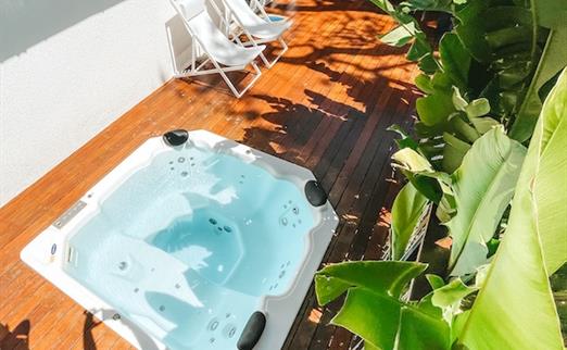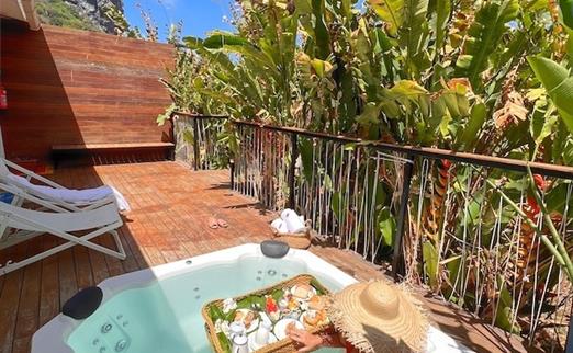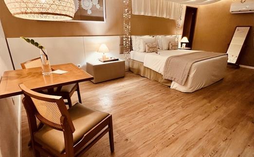 Suítes com aproximadamente 60m2, cada suíte dispõe de uma varanda exclusiva com poltronas e banheira com hidromassagem com cromoterapia, proporcionando um ambiente de relaxamento supremo, além de camas tipo box com decorações memoráveis. O banheiro, em estilo sala de banho, é equipado com ducha de aquecimento solar, amenidades e secador de cabelo. As comodidades incluem TV led com serviços de streaming e a cabo, cofre eletrônico, frigobar com minibar, ar-condicionado split eco, máquina de café expresso e uma área de estar com poltrona e mesa para 2 pessoas. Nesta categoria, os mimos de boas-vindas são uma cortesia especial da casa....