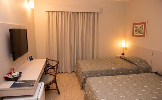 As acomodações com duas camas de solteiro, minibar, ar condicionado split com controle remoto, TV LCD 43” a cabo, mesa de trabalho, cofre individual, secador, Internet WiFi gratuita, segurança 24 horas, apartamentos exclusivos para não fumantes e Room Service até às 22h. A área de lazer do Gandini Hotel é completa, com piscina e cascata, ideal para relaxar após um dia de trabalho ou em seu final de semana. O espaço conta o serviço de bar, cadeiras e mesas, além de vestiários. Academia CTE7 para as pessoas que gostam de manter a rotina de treinos mais intensos mesmo fora de casa, além do fitness center em nossa estrutura, a menos d...