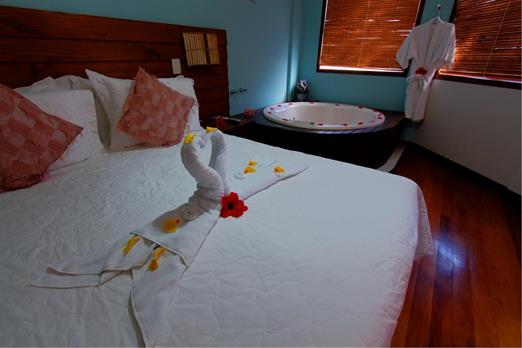 A suíte Máster possui cozinha completa com frigobar, microondas, cook top 2 bocas e utensílios, ar- condicionado, banheira de hidromassagem para duas pessoas, banheiro com duas duchas, TV 42 Tela Plana, WiFi e cama box king size. Capacidade para acomodar até duas pessoas.