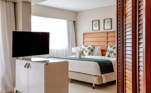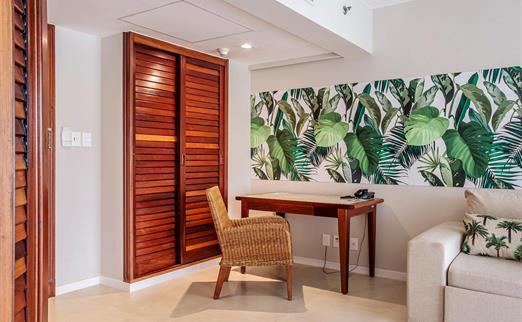 1 sofá-cama e 1 cama de casal grande. Suíte privativa 42 m² Varanda Vista do jardim Ar-condicionado Banheiro no quarto TV de tela plana Frigobar WiFi Gratuito Produtos de higiene pessoal gratuitos / Chuveiro / Cofre / Vaso sanitário / Toalhas / Roupa de cama / Tomada perto da cama / Piso de mármore/azulejo / Mesa de trabalho / Área de estar / TV / Telefone / Secador de cabelo / Camas extralongas (+ de 2 metros) / Móveis na área externa / Canais a cabo / Serviço de despertar / Guarda-roupa ou armário / Papel higiênico / Sofá-cama / Álcool gel / Purificadores de ar. Os quartos PCD e Adaptado podem ser utilizados em casos de remanej...