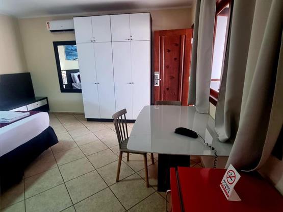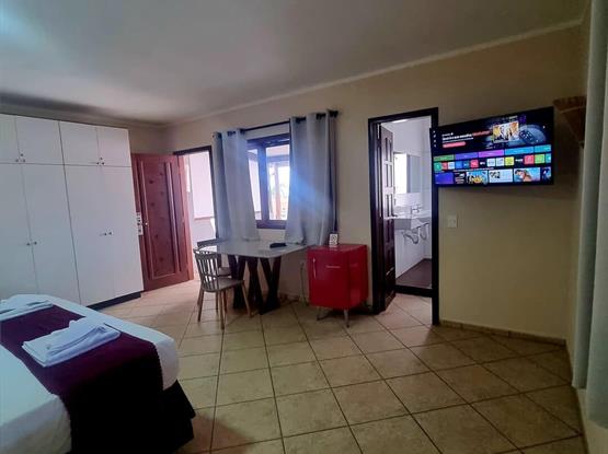 Esta habitação está equipada com TV LCD, TV à cabo, Telefone privativo, Frigobar, chuveiro , armário para guardar roupas, ar condicionado split, escrivaninha, wi-fi, espelho de aumento para maquiagem, roupões para saída de banho, luz de cabeceira para leitura. Lençóis de 180 fios, dois travesseiros e uma colcha cobre-cama. Fechadura eletrônica.