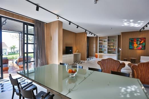 Suíte exclusiva localizada em Chalé com vista para o Mar e total privacidade. Possui área total de 64m², divididos entre sala de estar, banh...